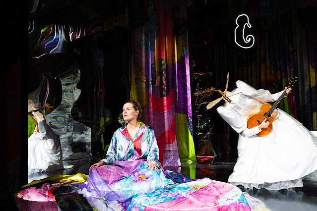 Simone Bartholins scenografi er et psykedelisk spejlkabinet af farver og former, der matcher forestillingens fortællestil. Tæt på for meget og i hvert fald over the top.